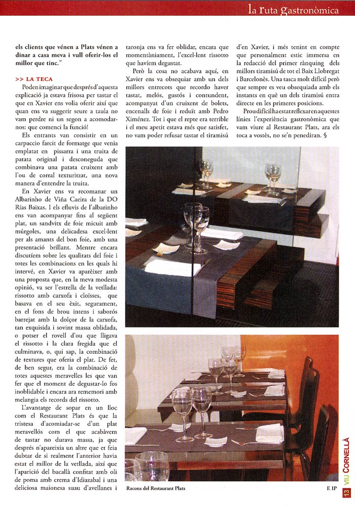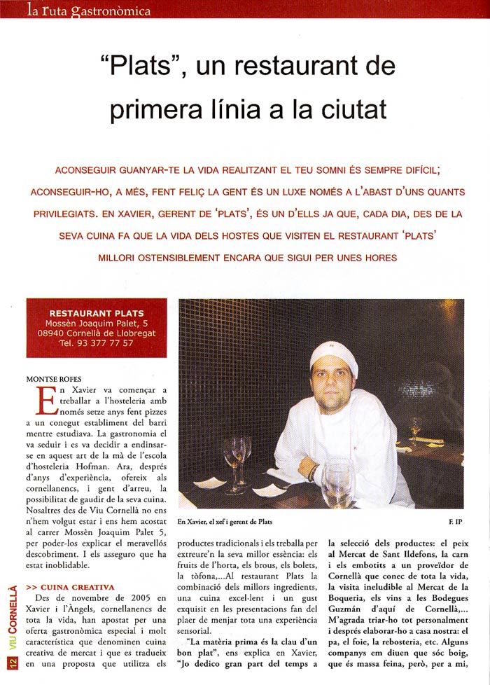 VIU CORNELLÀ "Plats", un restaurant de primera línia a la ciutat - > descarregar retall de premsa 01 > descarregar retall de premsa 02
